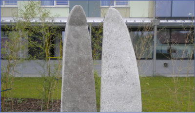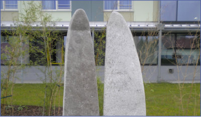 bespielbare Skulptur aus Granit und Sitzsteine